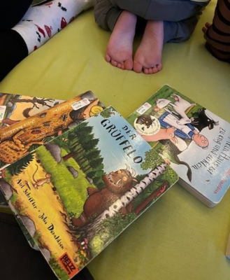 Auch die Kids der Leipziger Kita Blumenstraße dürfen sich heute über Vorlesemomente ihrer Lieblingsbücher freuen, darunter "der Grüffelo" oder auch das Bilderbuch "Superwurm".