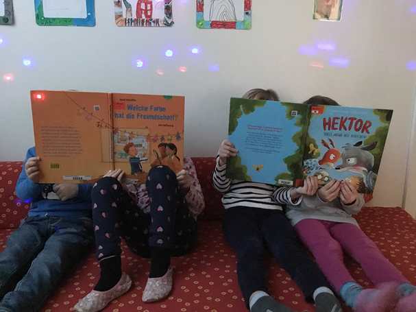 Die Mädchen und Jungen machten es sich im Snoezelraum mit Matratzen und Decken gemütlich und lauschten spannenden und aufregenden Geschichten, bei denen die Kleinen immer etwas mitnehmen konnten. „Vorlesen verbindet und schafft nicht nur lustige, traurige und spannende Momente, sondern fördert auch spielerisch das Sprechen- und Lesenlernen.“, betonte Ramona Thünemann, Leiterin der Kitas Krüselblick und Moosstiege und führte weiter aus: „Darüber hinaus haben wir auch mehrsprachige Lesestunden mit Eltern oder Großeltern angeboten, um auch hier das spielende Lernen zu ermöglichen. Buchausstellungen und Bilderbuchkinos motivieren die Eltern und Familien der Kids auch zu Hause öfter zu einem Buch zu greifen und auf digitale Medien zu verzichten.“