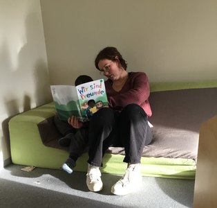 Als Vorlesegäste wurden auch die Eltern und weitere Familienmitglieder der Kinder der Kita Nordweg eingeladen. Ob in der Bibliothek, der Hör-Ecke oder im „Rampel Pampel Raum“ - überall entstanden gemütliche Lese-Ecken, sodass die Kinder den spannenden Geschichten in heimeliger Atmosphäre in Ruhe folgen konnten. Zur Untermalung der selbstgewählten Geschichten brachten die Vorleser:innen sogar Plätzchen, Musik und Kuscheltiere mit.