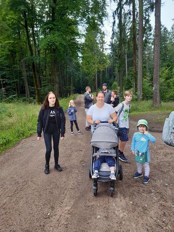 Am 2. Tag folgte nach einem ausgiebigen Frühstück die gewünschte Wanderung zur Forzbachl-Quelle, an der sich fast alle Familien beteiligten. Bei einigen blieb auch ein Elternteil mit den kleineren Kindern in der Einrichtung. Gepicknickt wurde mitten im Wald nach ca. 3 Kilometern und die Kinder beschäftigten sich aktiv mit herumliegenden Naturmaterialien. Nach Rückkehr zur Herberge blieb noch reichlich Zeit für individuelle Beschäftigungen. „Wir holten die mitgebrachten Spiele und Bastelmaterialien heraus, so, dass sowohl Eltern als auch Kinder ihre Freizeit mit Spaß und Spiel und auch intensiven Gesprächen verbringen konnten“, erinnert sich Kerstin Prendel.