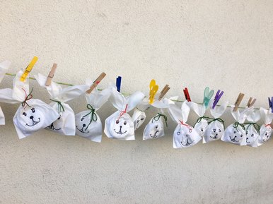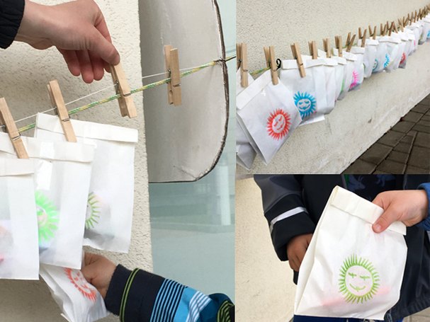Gut sichtbar am Haupteingang der Leipziger Kita Lutherstraße hängen einmal am Ende des Monats kleine Tüten an einer Wäscheleine. Als Alternative zu dem im Oktober gestarteten Familien-Kiosk hat sich das Team diese Aktion als besonders weitere Kontakt-reduzierte Möglichkeit überlegt, um ihre Kita-Familien eine Freude zu bereiten. Bereits im März gab es Hasen-Wundertüten mit einer Oster-Überraschung. Für April bargen die hängenden Wundertüten ein wahres Natur-Wunder! So befanden sich am 29. April 2021 in den Tüten Ringelblumensamen samt Quell-Erde und einer liebevollen Anleitung – ein kompaktes Wachstum-Experiment für zu Hause!
