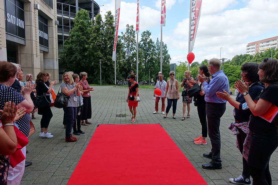 Zum Abschied über den roten Teppich: Outlaw in Leipzig würdigt langjährige Kita-Leiterin Brigitte Bachmann