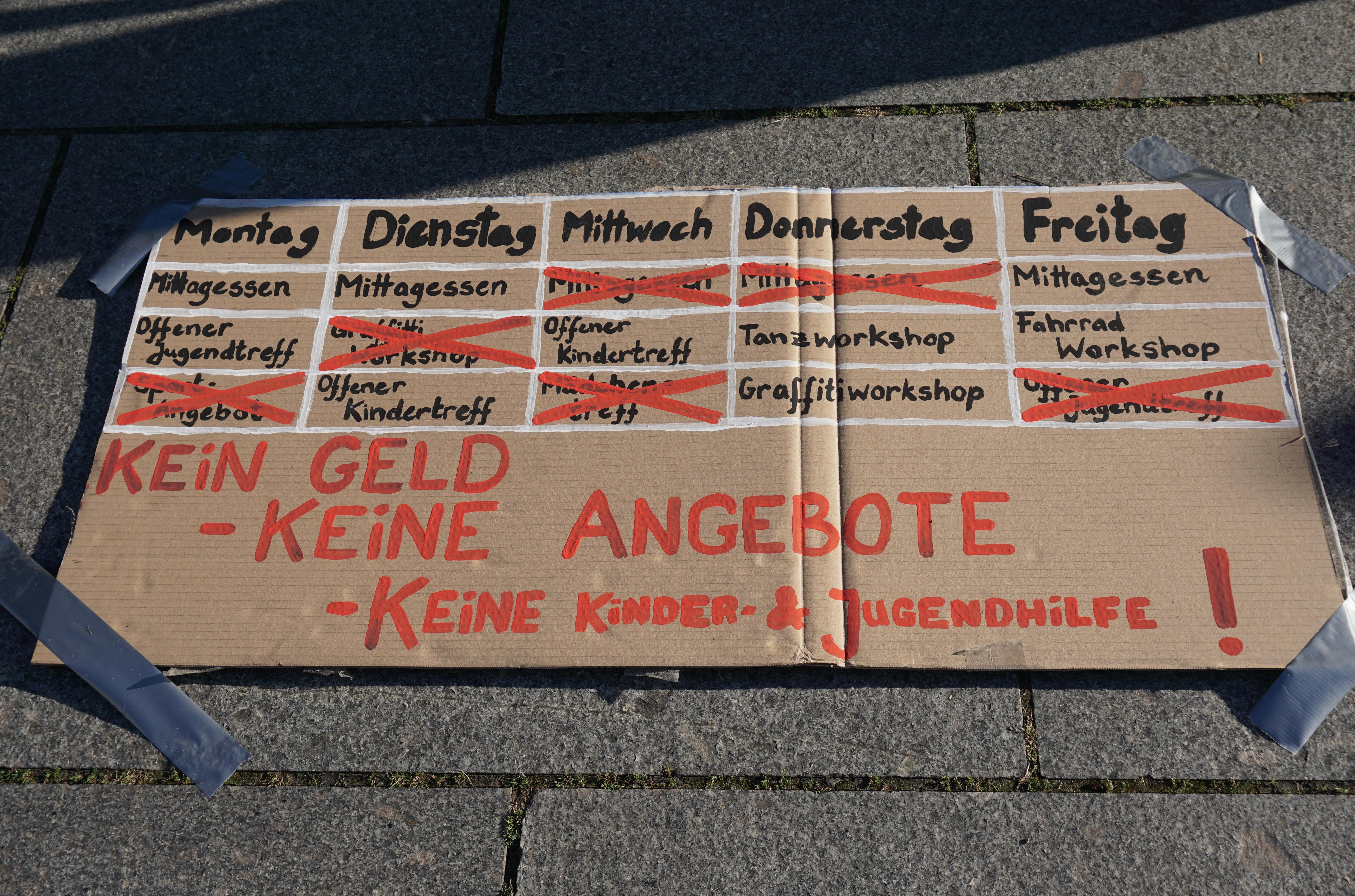 Offene Kinder- und Jugendarbeit erhalten -Outlaw-Pädagog*innen demonstrieren in Dresden gegen Haushaltskürzungen